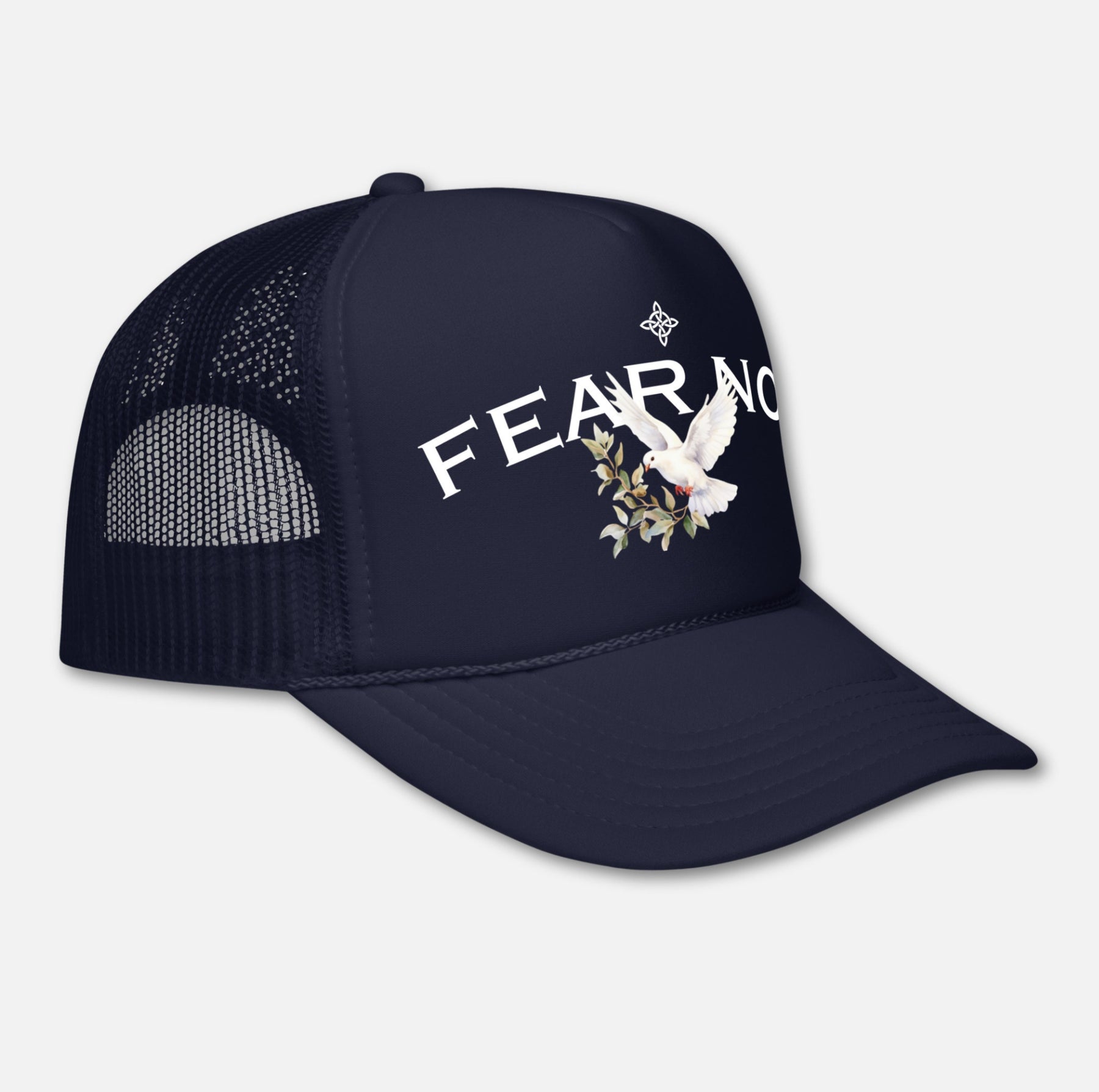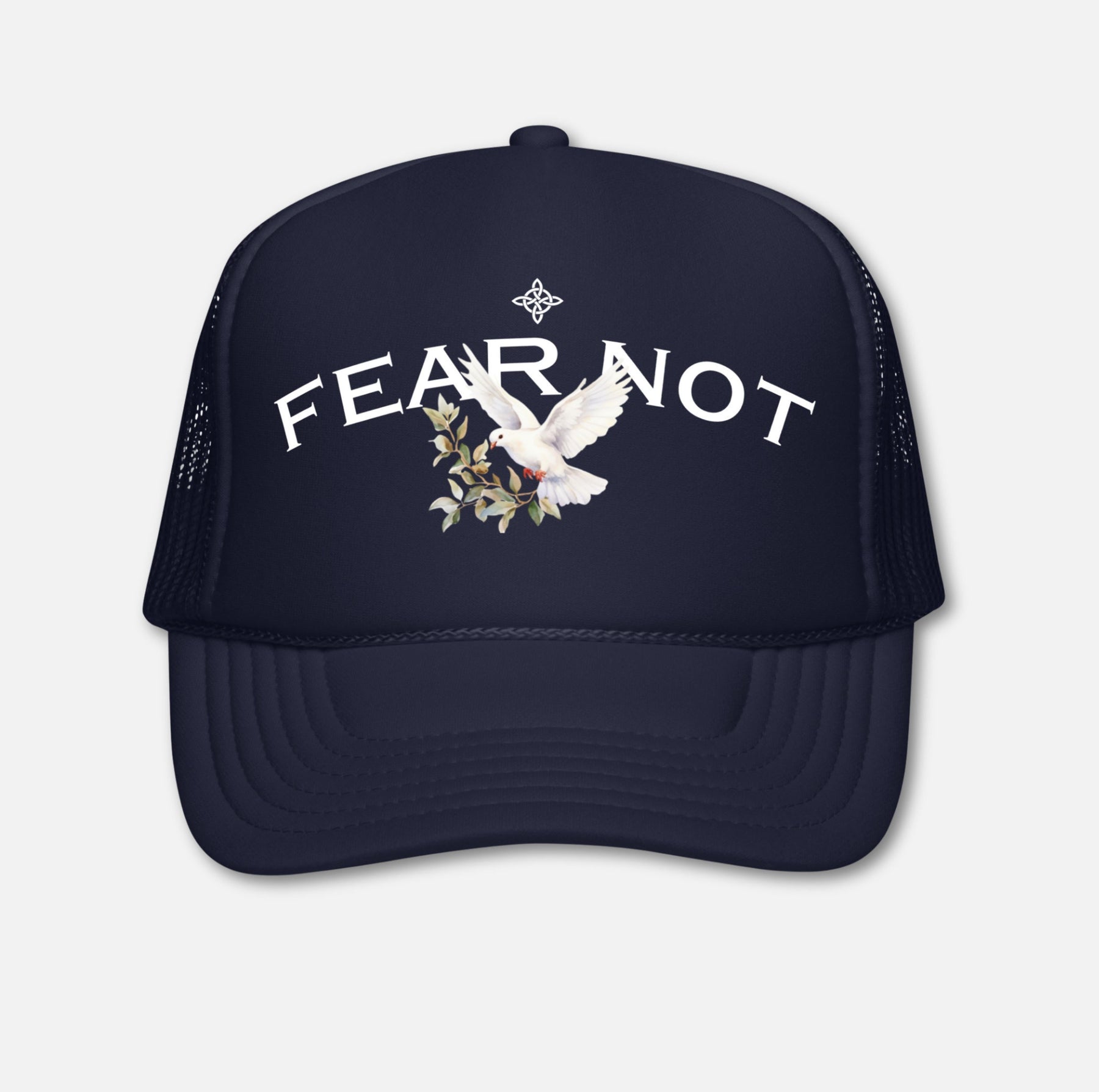 Peace feels different when you wear it. Elevate your look with the Wreath Dove Trucker Hat.
